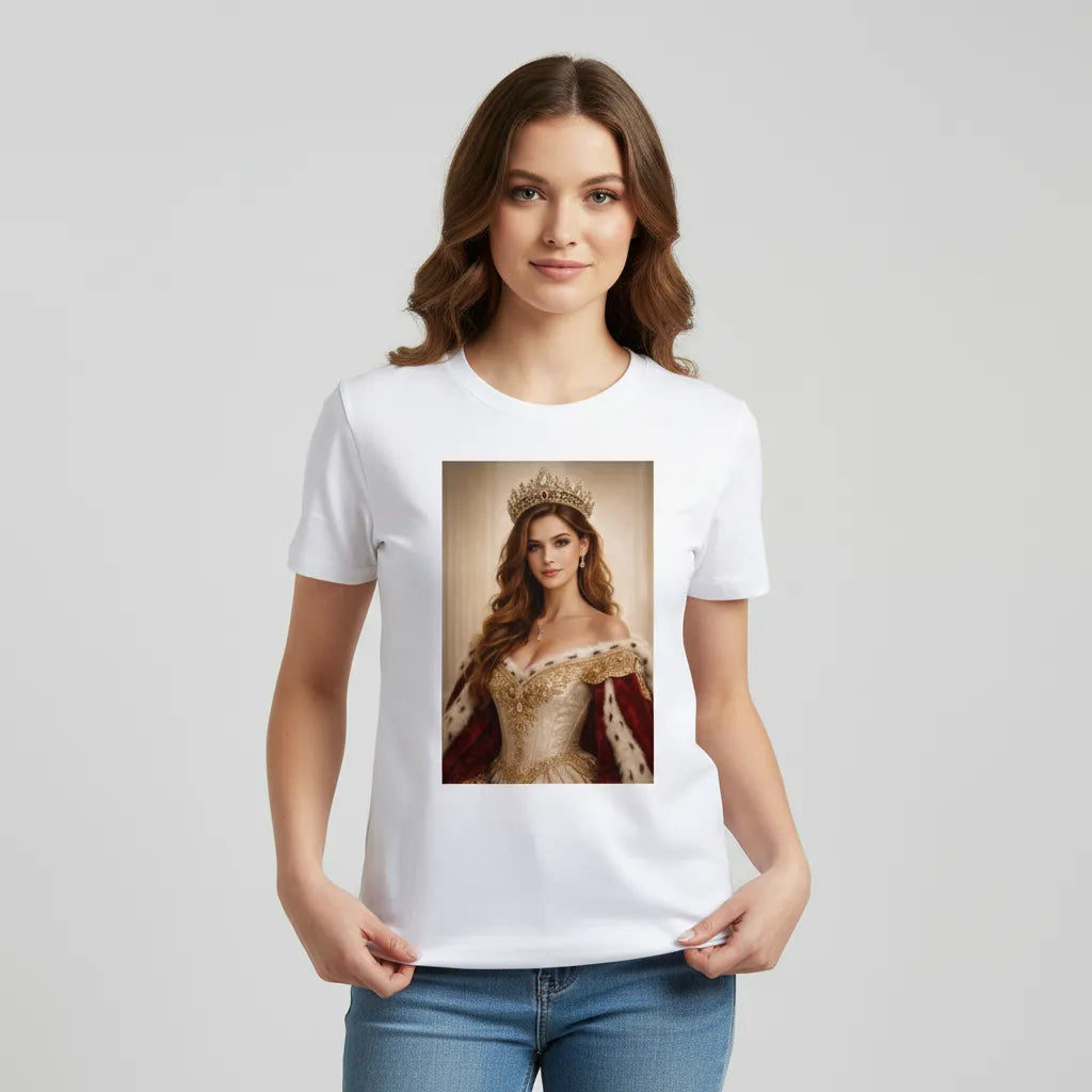 Koszulka królewski portret ze zdjęcia to wyjątkowa koszulka z nadrukiem, która zamienia Twoje zdjęcie w elegancki portret królewski w stylu klasycznych obrazów. T shirt z nadrukiem przedstawia postać w królewskim stroju, z detalami inspirowanymi dawnymi epokami, co tworzy efekt luksusowego i zabawnego jednocześnie projektu. Koszulka z własnym zdjęciem to idealny pomysł na prezent - sprawdzi się jako portret królewski prezent na urodziny, święta, rocznicę czy dzień chłopaka. Koszulki z własnym nadrukiem w tym stylu są bardzo popularne jako królewski portret personalizowany oraz królewski portret ze zdjęcia, który wyróżnia się na tle zwykłych koszulek. To także świetny wybór dla par – koszulki król i królowa lub koszulka królowa jest tylko jedna to hitowy pomysł na śmieszny i stylowy prezent.