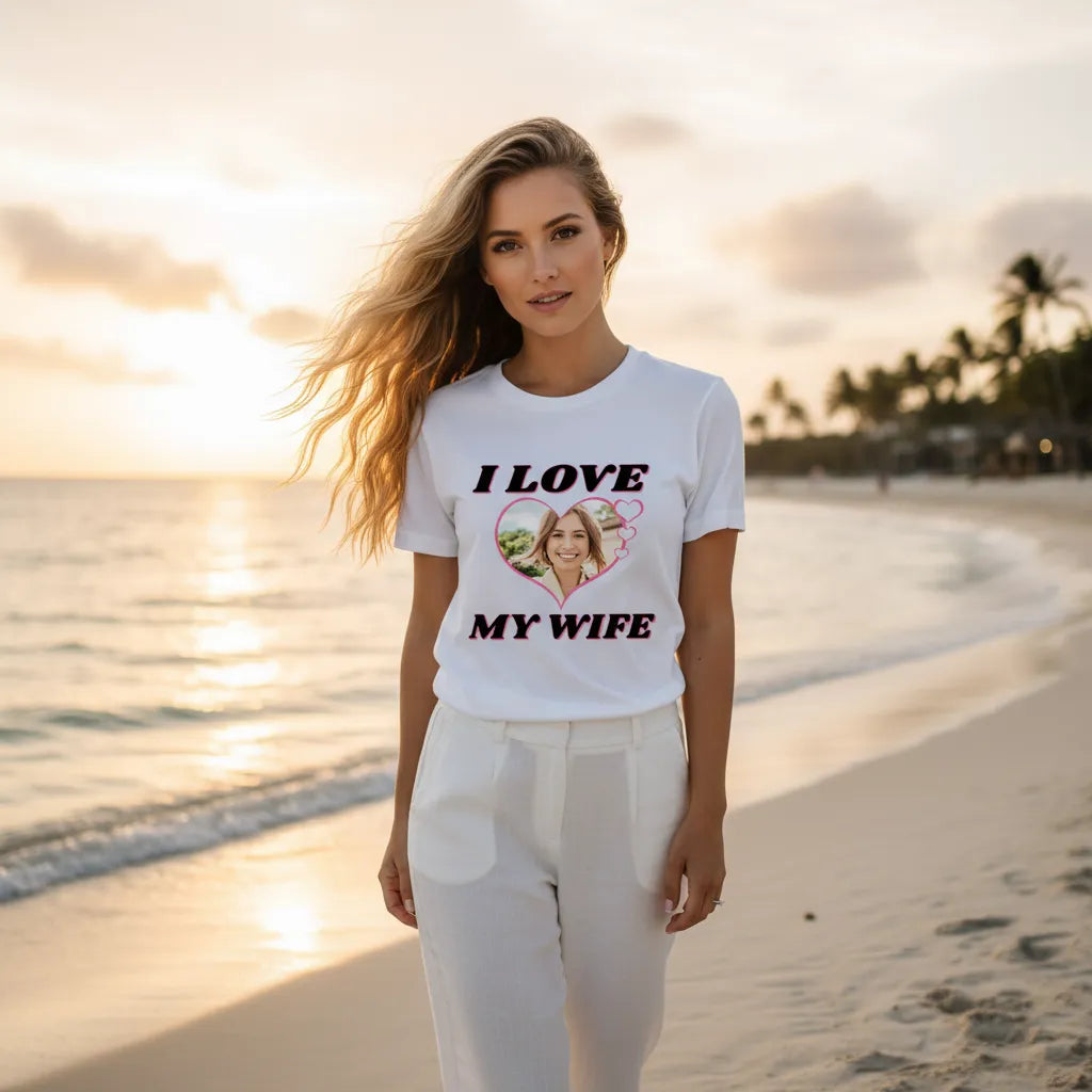 Szukasz prezentu na Walentynki, Dzień Chłopaka, dzień kobiet, Boże Narodzenie, urodziny, a może bez żadnej okazji? Koszulka Koszulka I Love My Wife ze zdjęciem jest doskonałym wyborem, który sprawdzi się w każdej sytuacji. To więcej niż prezent – to wyraz najgłębszych uczuć ubrany w modny wzór.