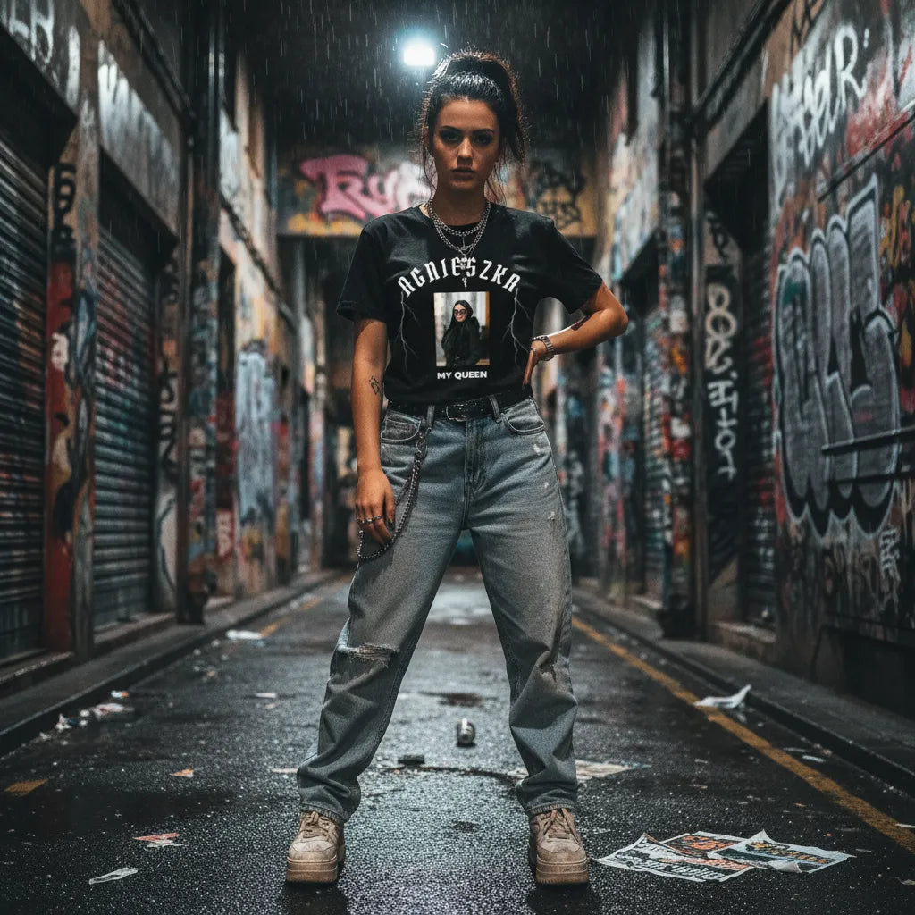 Bez względu na to, czy wybierasz koszulka personalizowana męska, czy celujesz w koszulki personalizowane damskie, styl koszulki bootleg pasuje do obu opcji. W praktyce taka koszulka personalizowana może mieć bardziej surowy, rapowy vibe albo bardziej estetyczny, “albumowy” układ. Najważniejsze, że to nadal koszulki personalizowane tworzone z Twoich materiałów, a nie przypadkowych grafik. Jeśli zależy Ci na dopasowaniu do osoby, koszulka personalizowana damska potrafi wyglądać równie wyraziście jak wersja męska. Efekt końcowy jest spójny, czytelny i robi wrażenie zarówno na ulicy, jak i na zdjęciach.