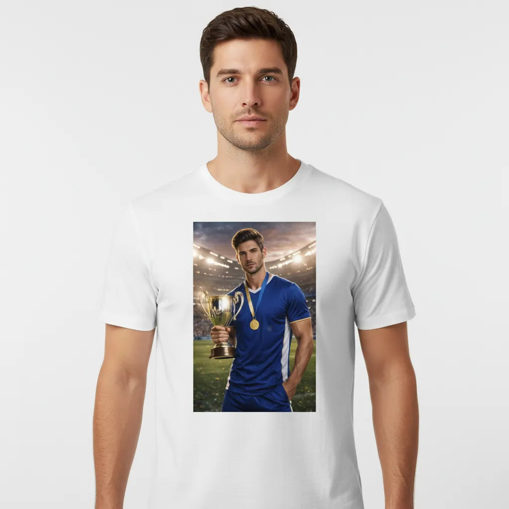 Koszulka Urodzony Mistrz ze zdjęcia to śmieszna koszulka z nadrukiem, która pozwala stworzyć własny projekt z efektem zwycięzcy. T shirt z nadrukiem w stylu mistrza to idealna koszulka z własnym zdjęciem na prezent dla chłopaka, prezent dla taty, prezent na urodziny, dzień ojca lub dzień chłopaka. Koszulki z własnym nadrukiem z napisem Urodzony Mistrz świetnie sprawdzają się jako koszulki na zamówienie dla osób, które chcą wyróżnić się stylem i poczuciem humoru.