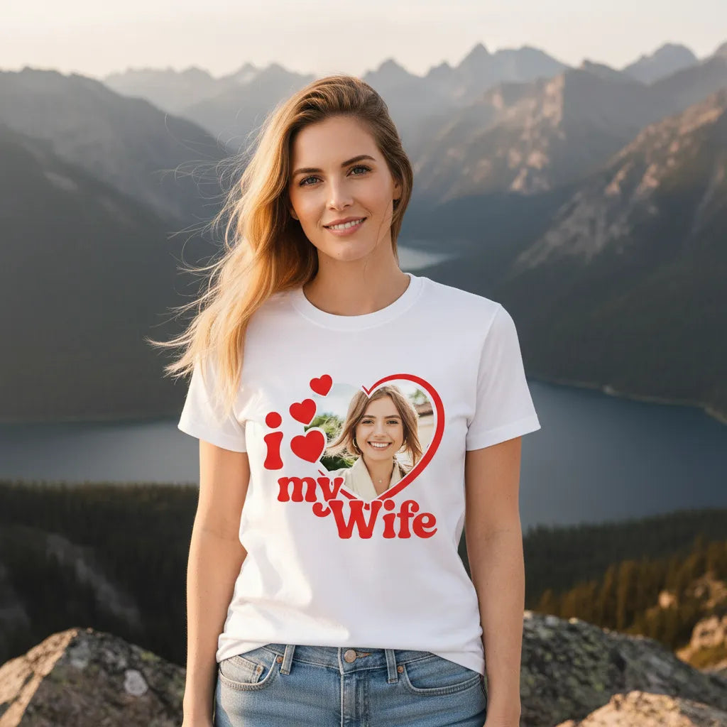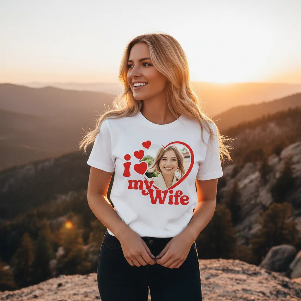Szukasz prezentu na Walentynki, Dzień Chłopaka, dzień kobiet, Boże Narodzenie, urodziny, a może bez żadnej okazji? Koszulka Koszulka I Love My Wife ze zdjęciem jest doskonałym wyborem, który sprawdzi się w każdej sytuacji. To więcej niż prezent – to wyraz najgłębszych uczuć ubrany w modny wzór.