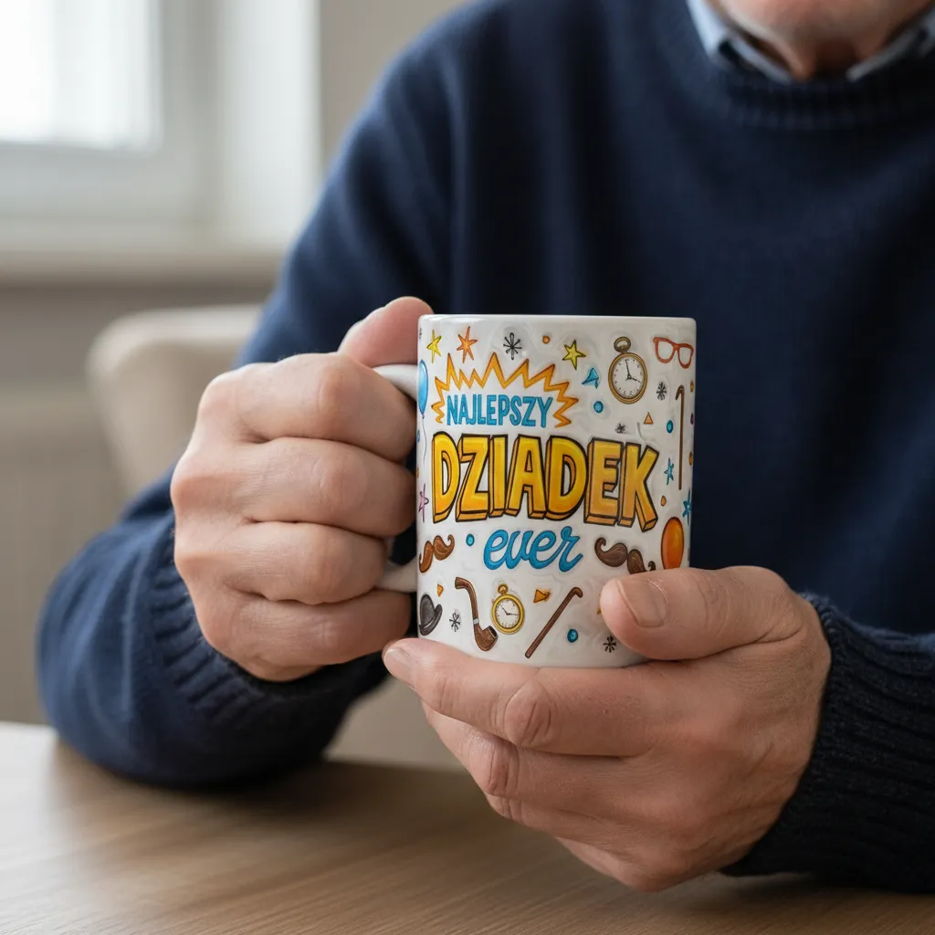 Kubek z personalizacją pasuje do każdego dziadka – niezależnie czy jest typem „złotej rączki”, żartownisiem, czy spokojnym domatorem. To również świetny pomysł na prezent od wnuków, bo wnuki mogą dodać swoje zdjęcie, rysunek lub prostą dedykację. Taki kubek często staje się „ulubionym kubkiem dziadka”. Jest praktyczny i codzienny, a jednocześnie naprawdę wyjątkowy. I właśnie dlatego sprzedaje się najlepiej na Dzień Dziadka oraz Dzień Babci i Dziadka.
